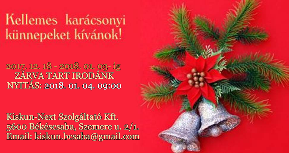 Békéscsabai kirendeltség 2017. karácsonyi nyitvatartás