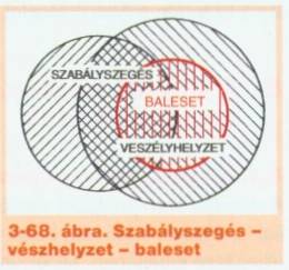 A közlekedési szabályok megszegése veszélyhelyzetet okozhat, abból pedig könnyen baleset lehet. Ezt a logikai összefüggést a 3-68. ábra szemlélteti. Ha ezt az általánosan érvényes logikai kapcsolatot részletesen megvizsgáljuk, az egyén szempontjából a következőket állapíthatjuk meg: