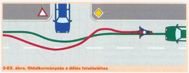 A kikerülési nyom megtervezésekor vegyük figyelembe, hogy a motorkerékpár bedöntéséhez először ellenkormányzás szükséges, ugyanakkor a kikerülési út általában kisebb, mint a fékút (3-82. ábra).